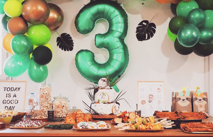 En parcourant les sites de vente de différentes décorations, je trouvais les propositions un peu fade, nous nous sommes tournés alors vers le thème Jungle. J’aime les fêtes, j’ai toujours fêté mon anniversaire tous les ans mais de manière différente depuis que je suis maman. Je m’investis plus dans les anniversaires d’ethan et bientôt pour Sacha. C’est un peu comme un RDV annuel on réfléchit, on imagine. on ajuste … bref le grand projet de la vie.