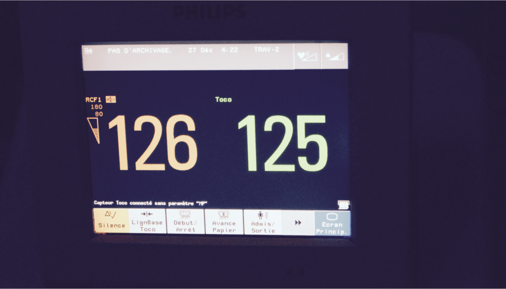 Je me suis rendue à un RDV de contrôle le 26 décembre au matin car j’étais surveillée de près. Après les différentes analyses poids, urines, tension et monitoring, on m’a annoncé la mauvaise et bonne nouvelle: vous êtes en pré-éclampsie on vous garde! A défaut de paniquer, j’étais soulagée car j’étais clairement venue à ce RDV avec l’intention d’accoucher. C’était en hiver j’étais en tongs j’avais 3 pointures de plus, je ne rentrais plus dans rien, je ne marchais plus je me traînais, je ne dormais plus et les jours restants comptaient comme des mois. C’était donc un soulagement : j’allais enfin rencontrer l’amour de ma vie! J’ai donc été déclenché à 4 jours de mon terme.