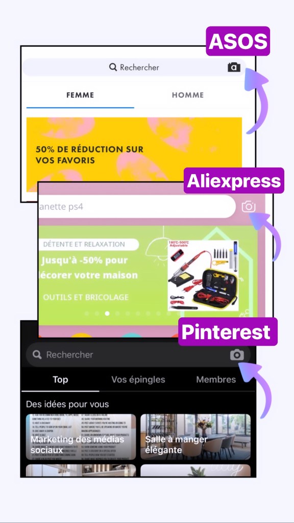 Vous avez peut-être déjà été frustré de ne pas avoir les informations sur un objet, un vêtement que vous avez repéré sur une publication? ou encore que la personne qui l’a partagé ne souhaite pas donner les informations pour les trouver ou les shopper! Pas de panique! Plus besoin de se prendre la tête à chercher pendant 1000 ans, vous avez repérer un article qui vous plaît, vous êtes en recherche d’idées… désormais plusieurs sites proposent la recherche par image: Sur Asos, H&M, Aliexpress, Pinterest, Google (version mobile avec l’option Lens) et bien d’autres. A partir d’une image, une photo ou une capture d’écran , on peut retrouver exactement ce qu’on cherche ou encore des articles similaires.
