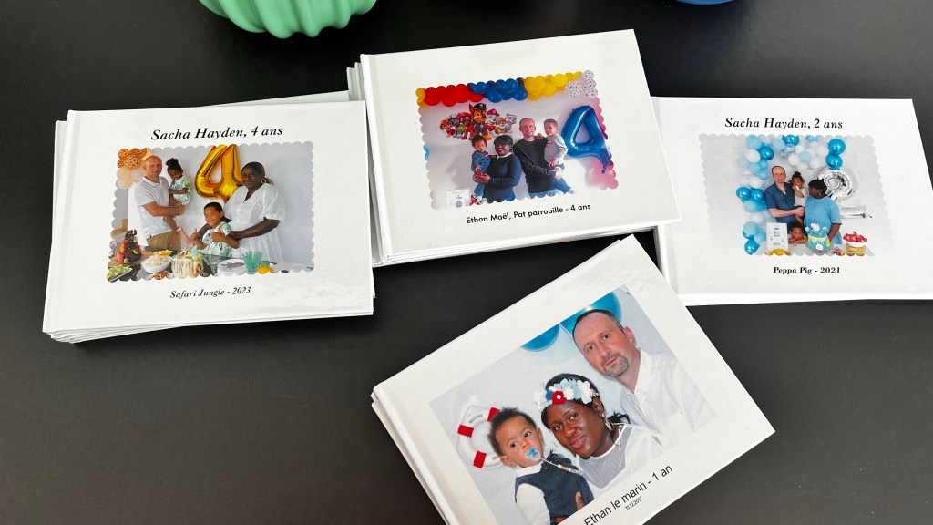 Les autres albums comme les voyages, les vadrouilles, les naissances, les anniversaires etc… sont à imprimer en version livres photos : même style, même format, livre photo multi pages qui permettent de minimiser le poids du livre car on peut mettre plusieurs photos par page. Le volume / nombre de pages peut changer mais le format reste le même pour faciliter le stockage par exemple dans les niches ou zone de stockage, je ne ferais pas des très grands livres car encombrants sauf si c’est à offrir à la famille par exemple en cadeau.