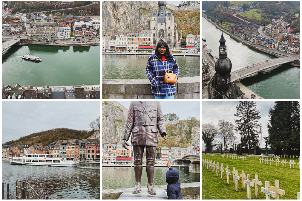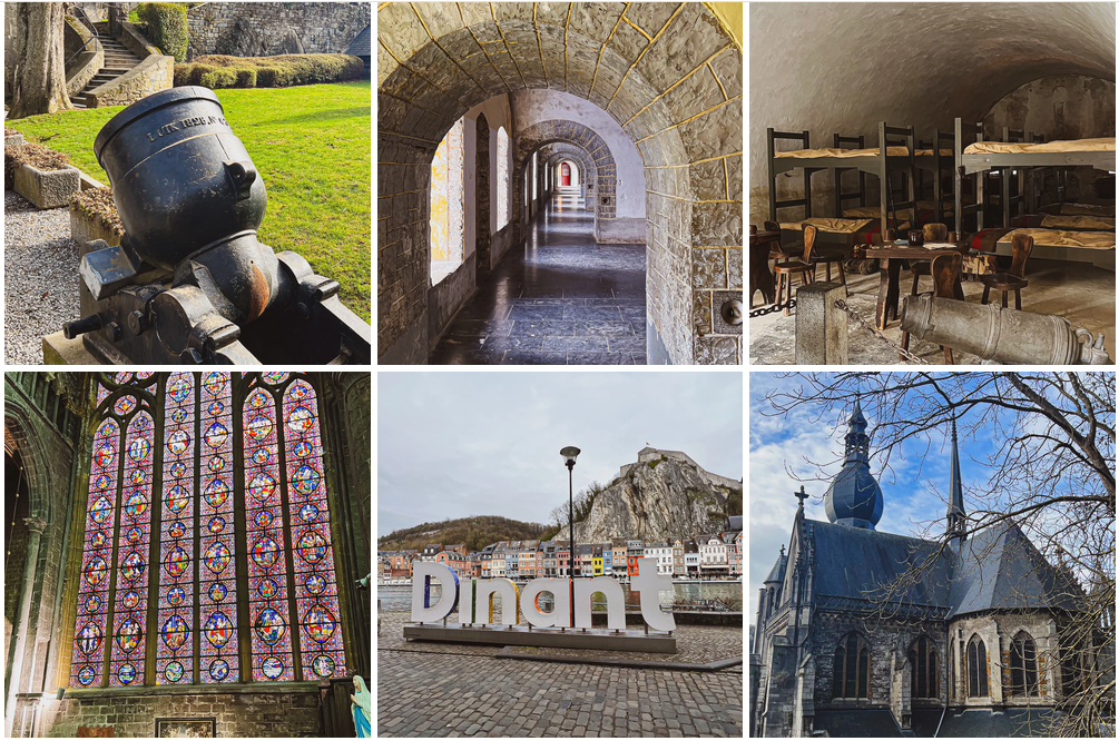 Nous avons démarré par la visite du cimetière militaire français, ensuite nous avons pris le téléphérique, il donne accès au centre de Dinant avec une vue imprenable sur la Meuse, nous avons gravi les 408 marches (mes mollets s’en souviennent encore, mon fils adore) pour accéder à la citadelle, demandez au guichet d’achat des billets, le raccourci si vous n’avez pas la force de prendre ces marches. La visite de la citadelle est très intéressante mais certains endroits/passages reproduisent les tirs exacts des scènes de guerre, Sacha avait eu peur, Ethan lui s’est éclaté (c’est pas très fun comme histoire hein). Après la citadelle, nous sommes redescendus en téléphérique , pour visiter la cathédrale « Collégiale notre Dame », une église gothique du patrimoine exceptionnel de Wallonie.