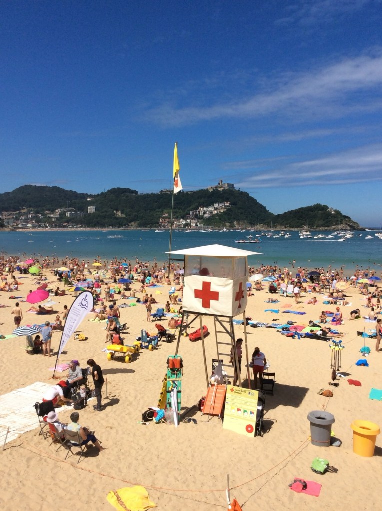 Il y a un parking couvert et payant à proximité immédiate qui permet d’accéder directement à la plage, c’est une longue plage de sable qui s’étend sur 1350 mètres . Elle est considérée comme l’une des plus belles plages urbaines d’Europe. Elle est encadrée par les monts Urgull et Igueldo et aussi par l’île de Santa Clara qui se trouve au centre de la baie. Elle est équipée de sanitaires, de douches, de casiers, et est surveillée par les garde-côte et la Croix Rouge l’été. Elle est située à l’ouest de la vieille ville, par contre il faut arriver très tôt si vous n’aimez pas la foule car elle est prise d’assaut très vite.´