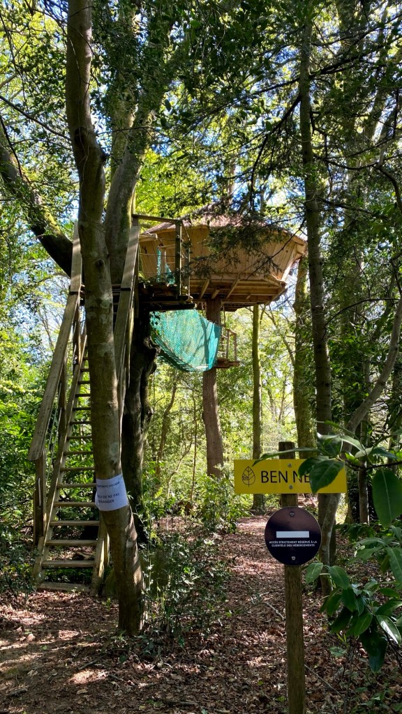 Bienvenue au domaine de Trouescat dans le Finistère (lien ici), ici vous trouverez des logements insolites, cabanes perchées et des yourtes. Nous avons choisi la Yourte Tweet, elle peut accueillir jusqu’5 personnes donc parfait pour 4 et possède un bain nordique. Le plus c’est que le domaine possède aussi un parc de loisirs où on peut faire du minigolf, les balades à pied ou en VTT, des jeux en plein air, un parcours de 1250 m2 sur des filets tendus entre les arbres de leur forêt.