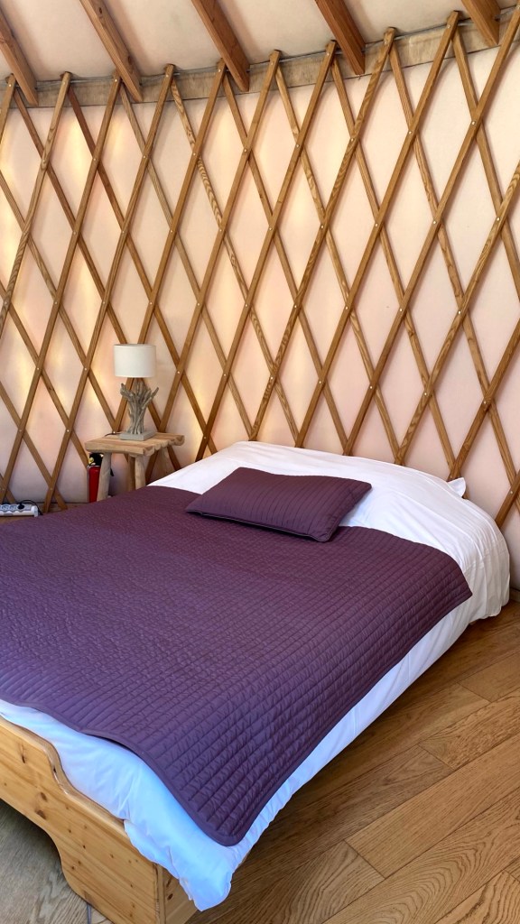 Quoi de mieux que de profiter des solutions de détente aux alentours de chez nous : nous dormons pour la première fois dans une yourte. C’est banal pour certains, ça reste une vraie expérience pour moi car j’aime le confort qu’offre une chambre et un lit classique, la perspective de passer du temps dans ce bain nordique me motive, un peu peur de la forêt et des petites bêtes.