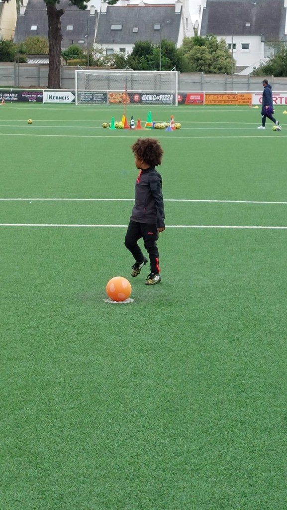 Il était donc logique et évident que le frère suivrait les traces. À ce jour, il a été inscrit aussi au football puisque il a l’âge, il a fait un premier essai il a tenu une heure puis il a fait un deuxième essai la semaine d’après il a tenu une demi-heure et au retour il a dit je pense que je vais tester d’autres sports. Je ne pense pas que je vais continuer le football, passionné mais à mon avis pas encore prêt Je pense que j’aime bien faire à la maison mais pas forcément faire avec un groupe à l’extérieur. Nous l’avons donc questionné sur ce qu’il souhaitait tester cette année. Il a donné quelques pistes mais sincèrement en tant que mère je pense qu’il n’est pas encore prêt à aller faire du sport collectif et je pense que comme son frère ça prendra un peu de temps avant de trouver vraiment quelque chose qui l’intéresse, mais il est clair que le foot ça prend beaucoup de temps entre les tournois et les entraînements, je n’étais pas prête.