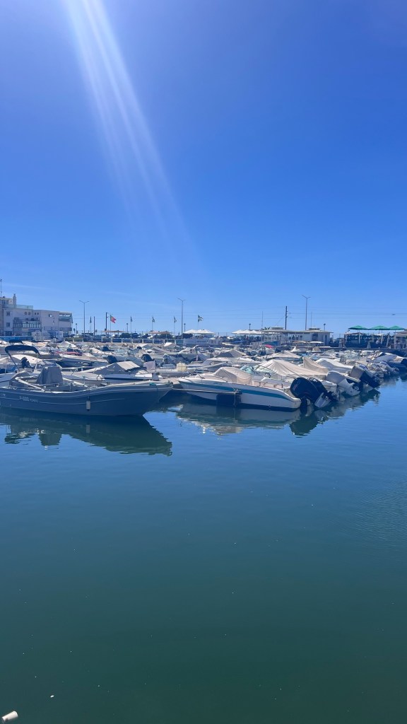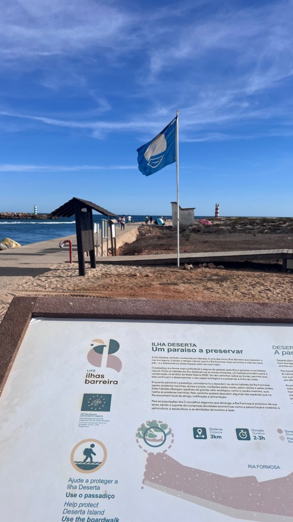 Retour au restaurant Do Coreto pour acheter un repas à emporter, nous avons pris une pizza que nous avons mangé sur le pouce dans l’agence qui a géré notre excursion, merci Ricardo puis direction la sortie en mer pour visiter les îles. J’ai réservé la sortie sur Getyourguide pour 39,99€ par personne et nous sommes partis avec la compagne Islands4You que je recommande à 100%, je pense que vous pouvez faire le même circuit avec n’importe quelle compagnie qui le propose mais je le recommande car les n’étais sont modernes, les places sont larges et nous n’étions que 10, pas serré du tout, les explications sont top, la petite musique au retour pour accompagner le coucher de soleil, le kiff total. Lors de la réservation les instructions sont bien claires mais on reçoit aussi un message whattaps avec toutes les indications de la part de la compagnie.La visite comprend une visite guidée du parc naturel de Ria Formosa on parle de faune et flore et des arrêts aux îles Deserta et Farol (temps libre environ 1 heure sur chaque île). Il y’a un départ à 11h30 et à 15h30, je vous conseille celui de 15h30 car au retour il y’a le coucher de soleil et s’il y’a bien une chose que j’ai aimé à Faro c’est le sunset : le reflet sur tous les bâtiments au centre ville, à la plage ou la Marina est dingue.