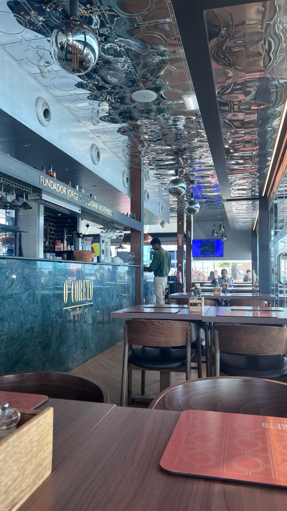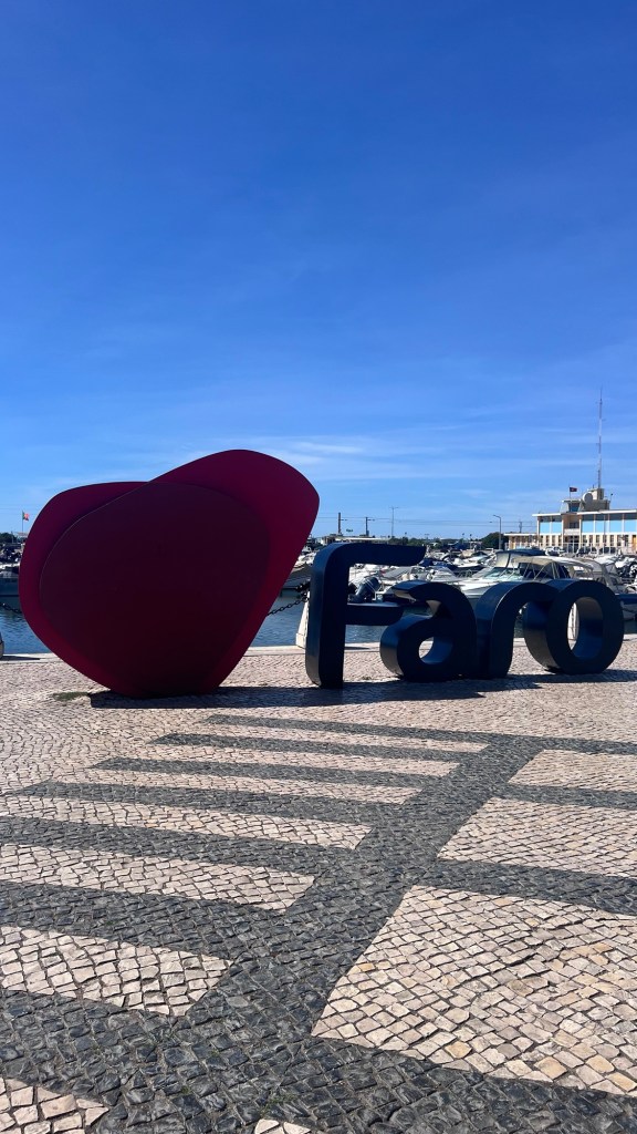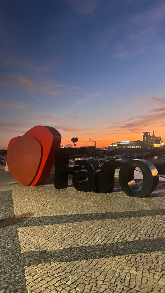 Nous sommes arrivés ensuite sur la marina de Faro, au coucher de soleil, le spectacle est magnifique puis nous avons dîné au café do coreto en terrasse vue sur la Marina avec la nuit tombante c’est trop joli. Après le dîner, direction le I Love Faro sign, juste à 10/20m du restaurant puis retour à l’hôtel en passant par les principales ruelles emblématiques de Faro (restaurant , magasins et pavés au sol ).