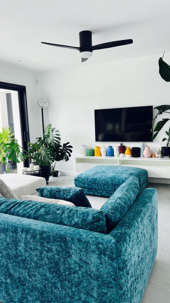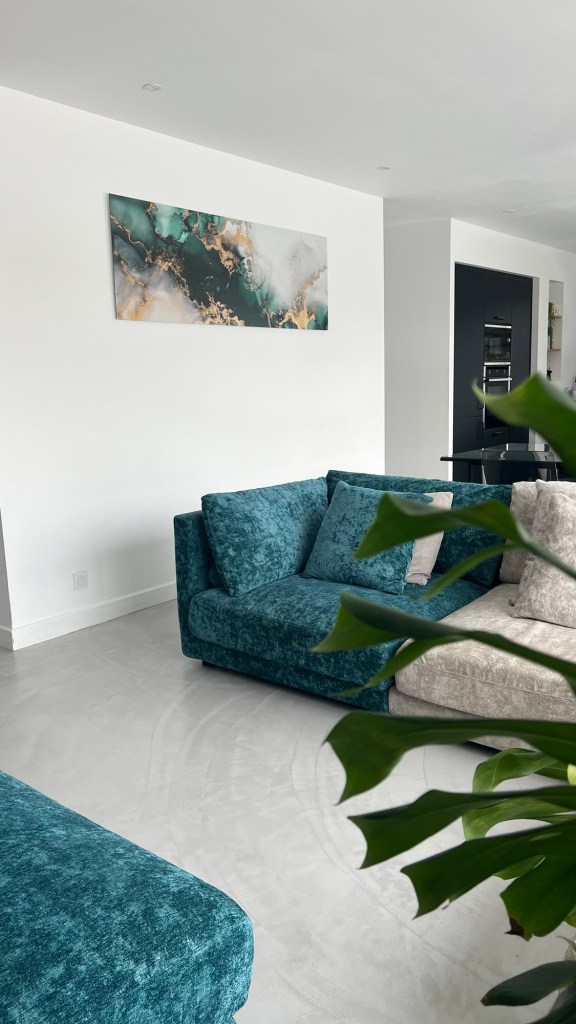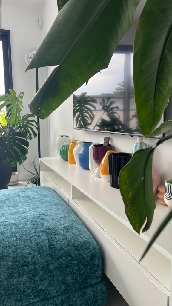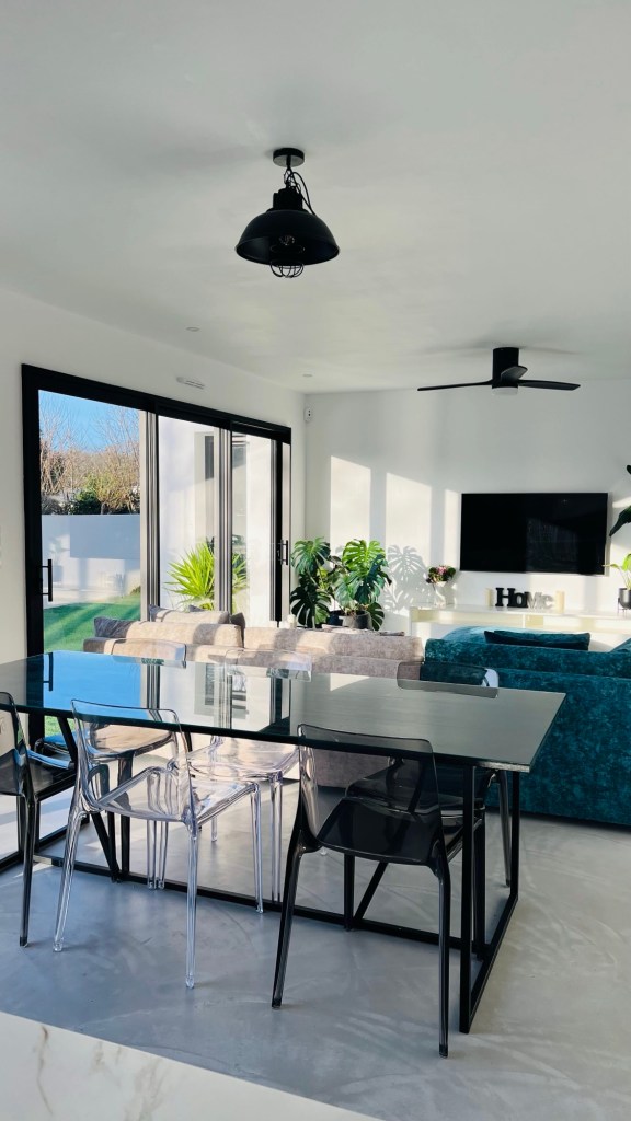 Cette pièce je la voulais rectangulaire avec un mur plein côté télévision ce qui a d’ailleurs compliqué l’agencement de la suite parentale . Dans les précédents logements j’avais une frustration, celle d’avoir des ouvertures mal positionnées du coup la TV était souvent en biais, aussi comme j’aime les cuisines ouvertes sur séjour. je souhaitais vraiment pouvoir cuisiner et être face à la TV.