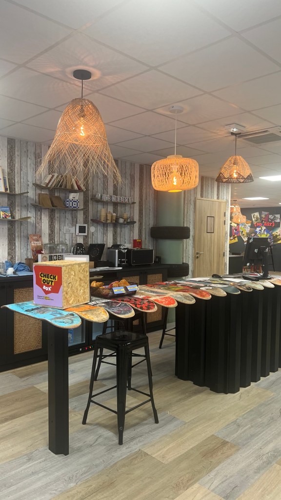 J’ai réservé l’hébergement le matin pour arriver le soir même. Je l’ai trouvé sur booking j’avais pris deux nuits puis nous avons ajouté une troisième nuit en y étant. L’hébergement nous a coûté 158€. C’est une auberge de jeunesse avec une décoration très moderne et très jeune. Ils ont des dortoirs, des chambres doubles mais aussi des chambres familiales. Si vous avez suivi notre Roadtrip au pays bas vous avez vu que nous avons fait une première expérience dans ce type d’hébergement à Amsterdam.