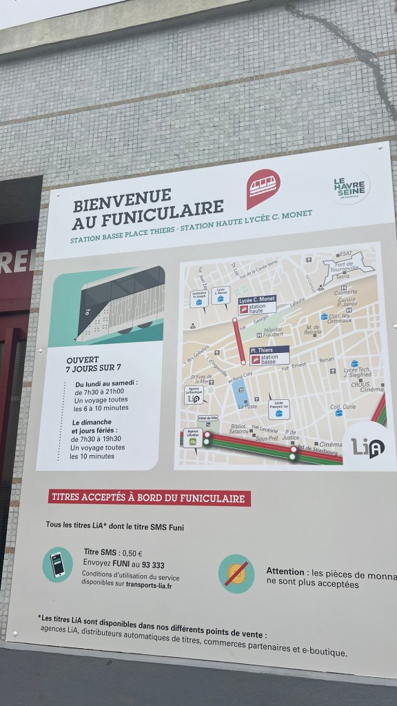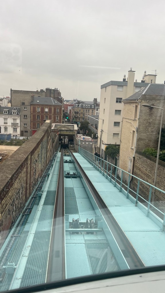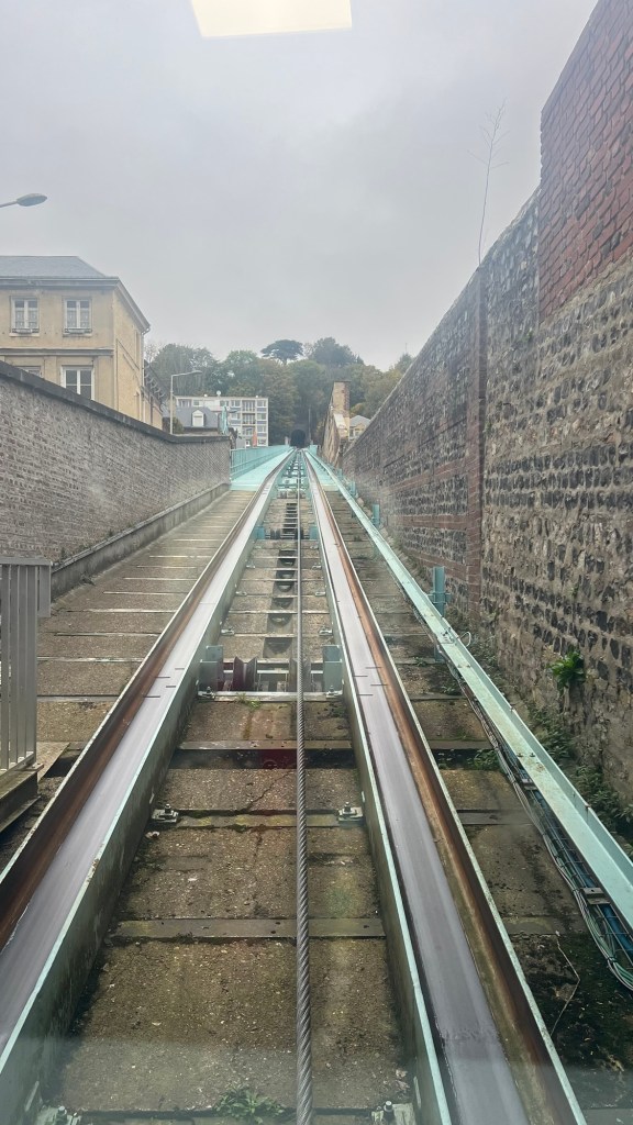 Après la bibliothèque , direction le funiculaire du Havre, nous avons fait l’aller retour le tarif tribu est de 1,50€ par trajet soit 3,00€ pour tout. Nous avons eu la chance et droit à des explications très précises de la part d’un agent sur l’histoire du funiculaire du Havre. En montée sur la haute ville, on peut aller rapidement à pied vers la table d’orientation mais nous y étions déjà la veille donc pas la peine c’est vraiment pour le plaisir des yeux monter et descendre et vu le coût ça mérite d’être fait (0,50 centimes par personne ou 1,50€ pour une famille).