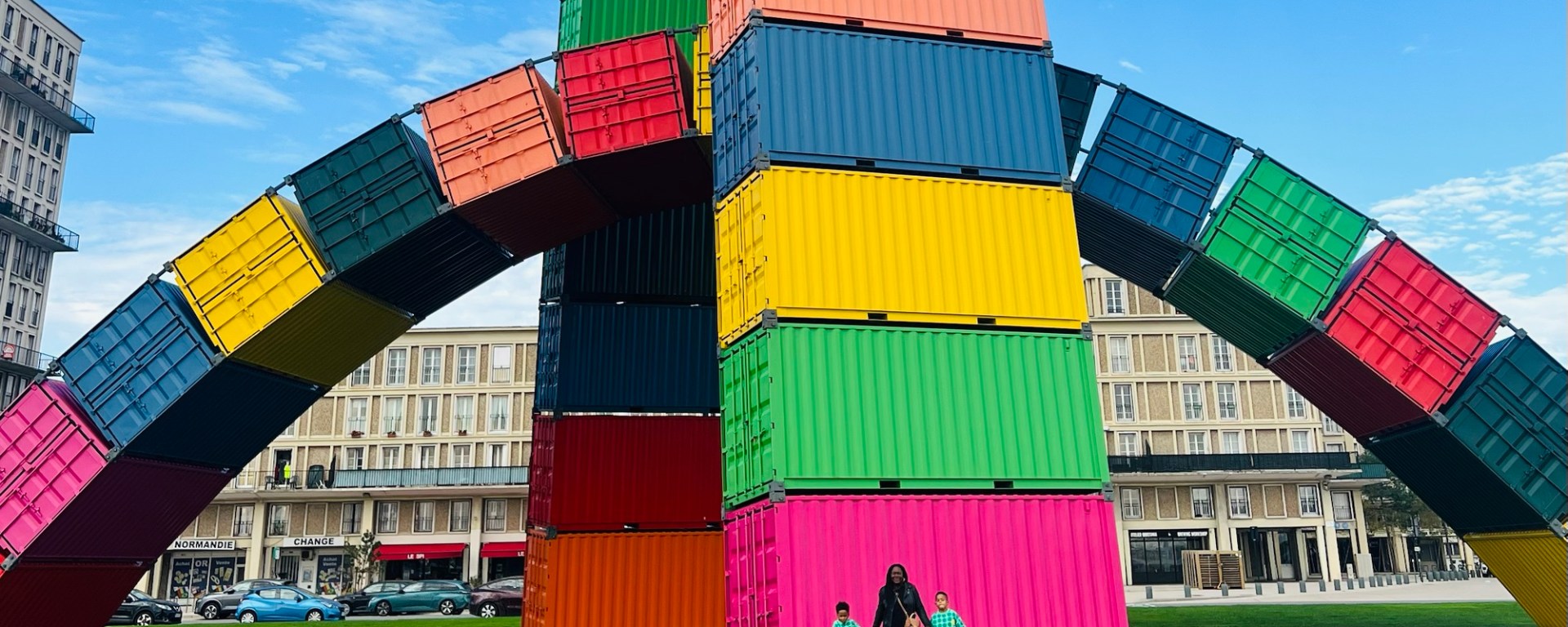 Notre première journée au Havre a été riche en découvertes. Nous avons commencé par le monument des soldats Havrais et la victoire de la France, un lieu empreint d’histoire, puis nous avons admiré l’architecture moderne du Volcan, conçu par Oscar Niemeyer. Ensuite, direction la carène des containers, créée en 2017 par Vincent Ganivet pour marquer le 500e anniversaire du port. Elle s’inscrit dans le cadre du festival « Un été au Havre », qui a lieu tous les ans depuis 2017 et qui permet à des artistes d’exposer leurs œuvres. Après, nous sommes revenus visiter vers la Cathédrale Notre-Dame, avec ses magnifiques vitraux et son atmosphère apaisante. Nous avons trouvé à proximité une pâtisserie qui fait des sandwichs, des pizzas c’est là que nous avons déjeuné. Ventre plein, Nadia contente donc direction les quais et la passerelle du bassin de commerce pour avoir la vue des 2 côtés des quais, il faisait beau et aux alentours on trouve des bancs pour faire une petite pause.