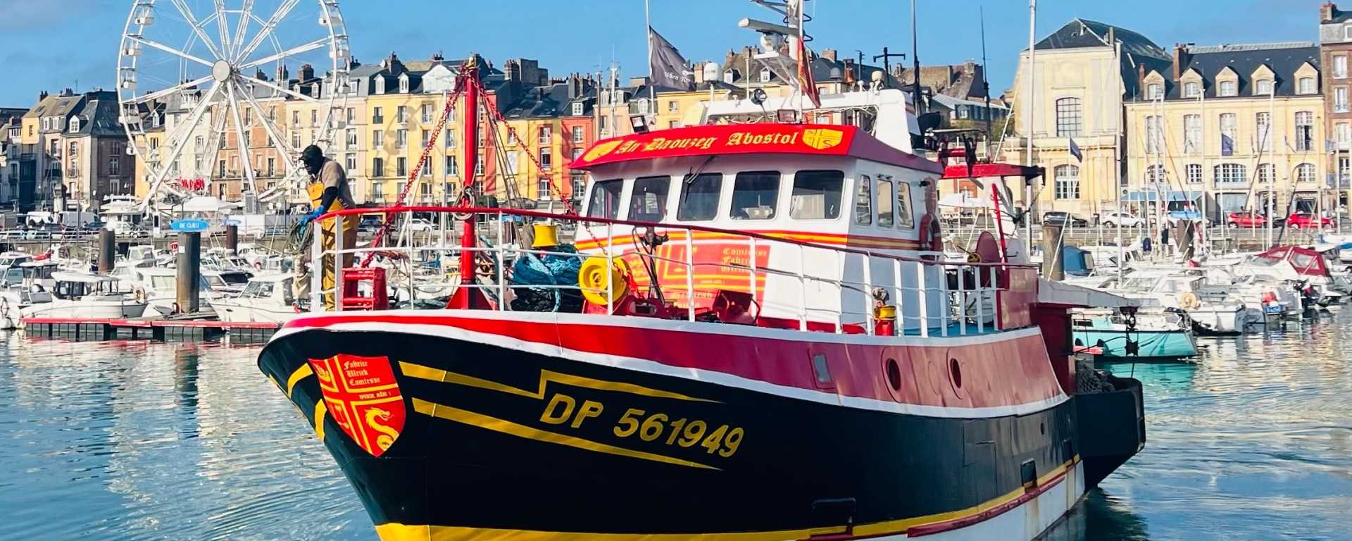 On se réveille de notre hôtel à Dieppe. Il se trouve à 500m de la plage, donc direction la plage pour une balade ensuite directement le port on fait un demi tour puis on regarde le pont se lever et laisser passer les bateaux, les retours de pêche essentiellement les coquilles de saint Jacques voir les bateaux amarrés. Après petit tour vers le marché aux possoons juste à côté ensuite direction l’église Saint Jacques de Dieppe.