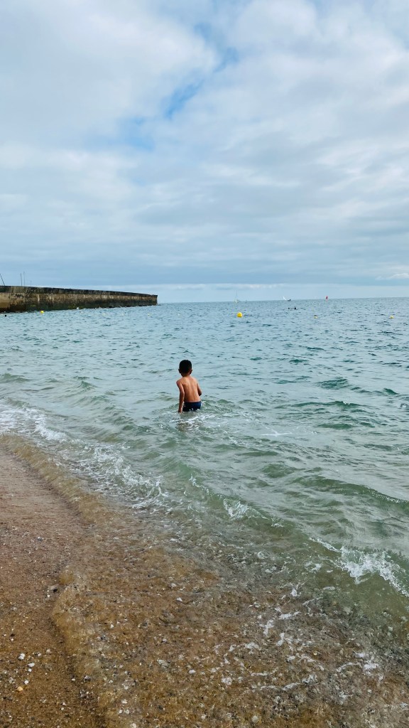 Journée 100 % vibes de vacances à Pornic ! Balade sur le port, restaurant en terrasse, petit train touristique pour le fun, retour sur le manège (eh oui), glaces et churros pour le goûter, et plage pour finir la journée les pieds dans l’eau.