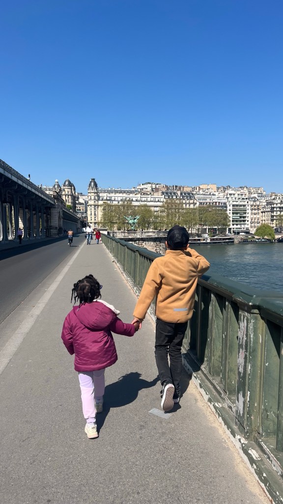 La Tour Eiffel. Le mythe, l’icône, le cliché. Après 1h30 de queue et un ascenseur en panne, ce fut ma quatrième tentative ratée de montée… mais on a ri, pris mille photos, et profité de la vue depuis le pont d’à côté (spoiler : ça fait aussi son petit effet). On a aussi fait une heure de bateau-mouche, commentaires d’enfants en fond sonore : “C’est là qu’habite le Président ?” (non), “C’est la vraie Seine ?” (oui), “Y a pas de crocodiles ici ?” (non, enfin… pas encore).