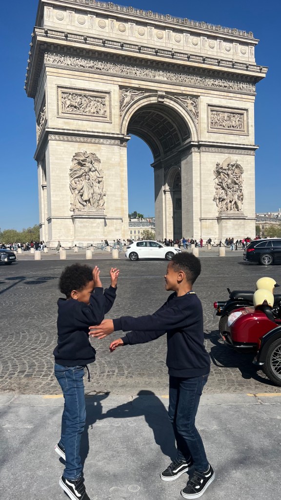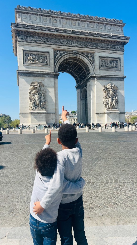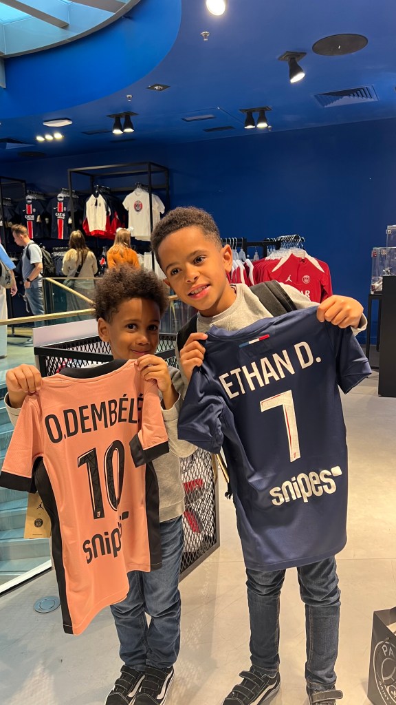 Les Champs-Élysées et l’arc de triomphe ? Deux fois. Parce que Paris, parce que les boutiques, et surtout parce que : maillots du PSG. Les enfants avaient des étoiles plein les yeux, j’avais mon compte en banque qui pleurait en silence.