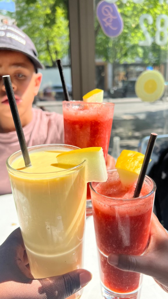 On a mangé au Paradis du Fruit, deux fois (où ils ont découvert le cocktail Joséphine Baker — une adoption immédiate), et on était aux colonnes de Buren.