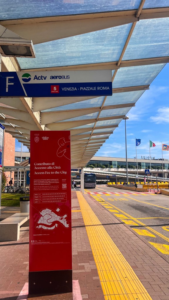 Nous sommes arrivées de Paris, à l’aéroport Marco Polo (VCE) après 1h30 de vol. Il y a également un second aéroport nommé Trévise (TSF). Venise possède aussi une gare, la Gare Santa Lucia en plein cœur de la ville arrêt Vaporetto Ferrovia : plusieurs solutions s’offrent donc aux voyageurs selon leurs lieux de départ.
