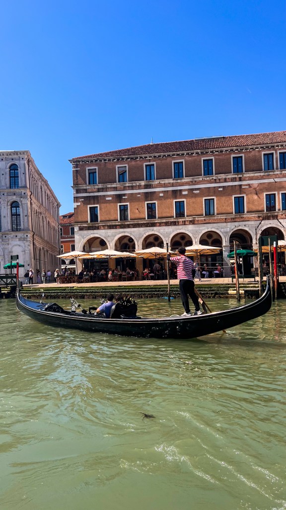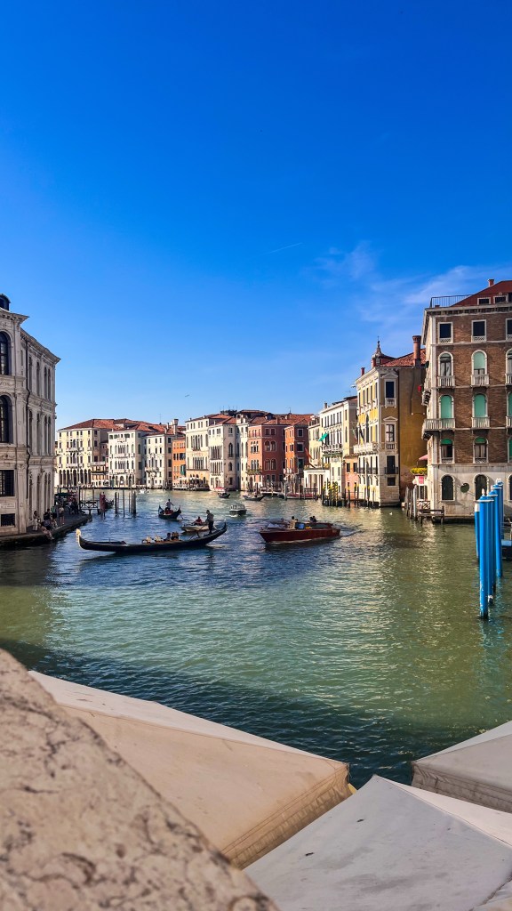 Pour ce deuxième jour, nous sommes sortis tôt, visiter Venise dans des bonnes conditions et sans foule nécessite quelques concessions. Par tôt j’entends un départ vers 7h mais pas de soucis il fait beau, déjà 19 degrés, c’est presque l’été. Direction le pont du Rialto et le quartier à pied, on assiste à un Venise qui se réveille : peu de monde dans les rues, les cafés qui ouvrent, les restaurants qui s’activent, les livraisons de marchandises etc… pas de bousculade dans les spots pour se créer des souvenirs on prend le temps.