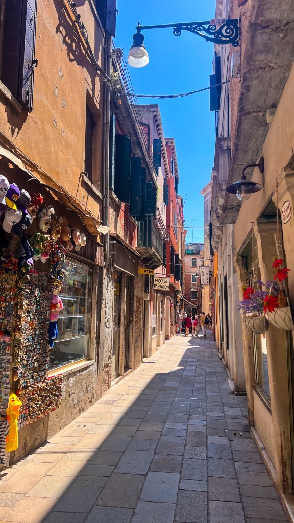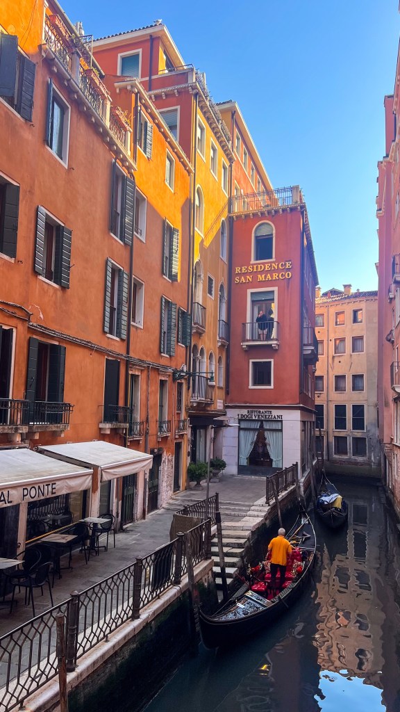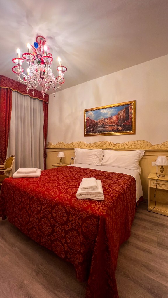 Nous avons logé à Ca’ Luisa (lien ici), un hébergement que ma sœur a qualifié d’hébergement Louis XIV) et bien placé, situé Rio Terà S. Leonardo, 1371, Cannaregio, à une quinzaine de minutes à pied du Pont du Rialto. Respectivement à 200m du Vaporetto 4.1/4.2/5.1 arrêt Guglie dont l’un qui mène directement sur l’île de Murano et des lignes 1 et 2 arrêt San Marcuelo. Le quartier est plutôt calme après minuit, local et avec tout à proximité : parfait pour explorer à pied ou en vaporetto. Il y a des restaurants à tous les coins de la rue, un mac do plus loin, 2 supermarchés dans la rue et de nombreux points de départs pour les gondoles.