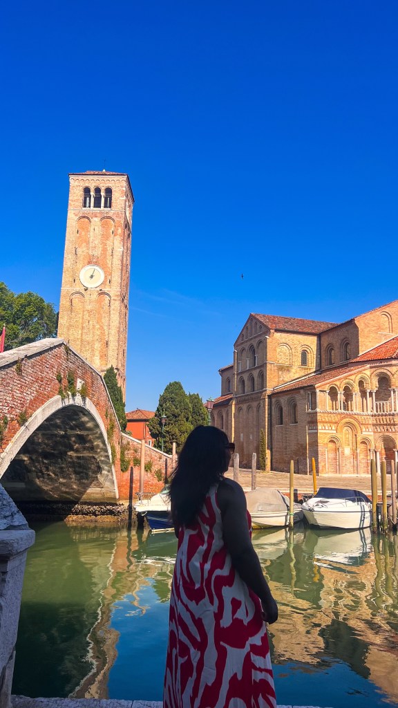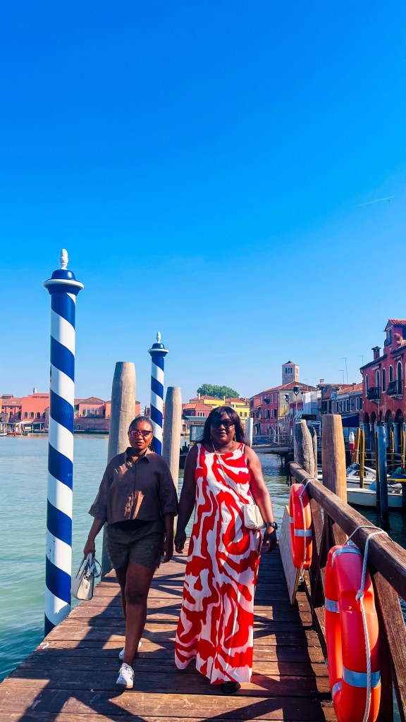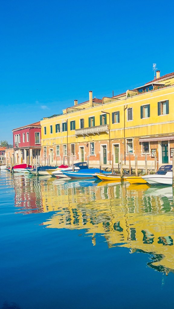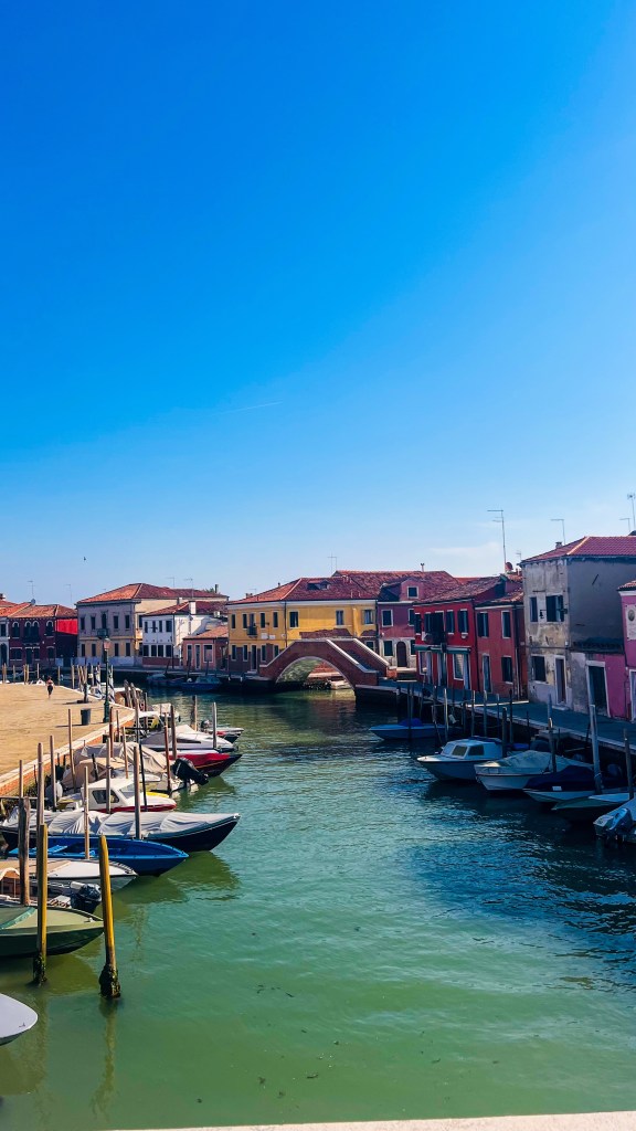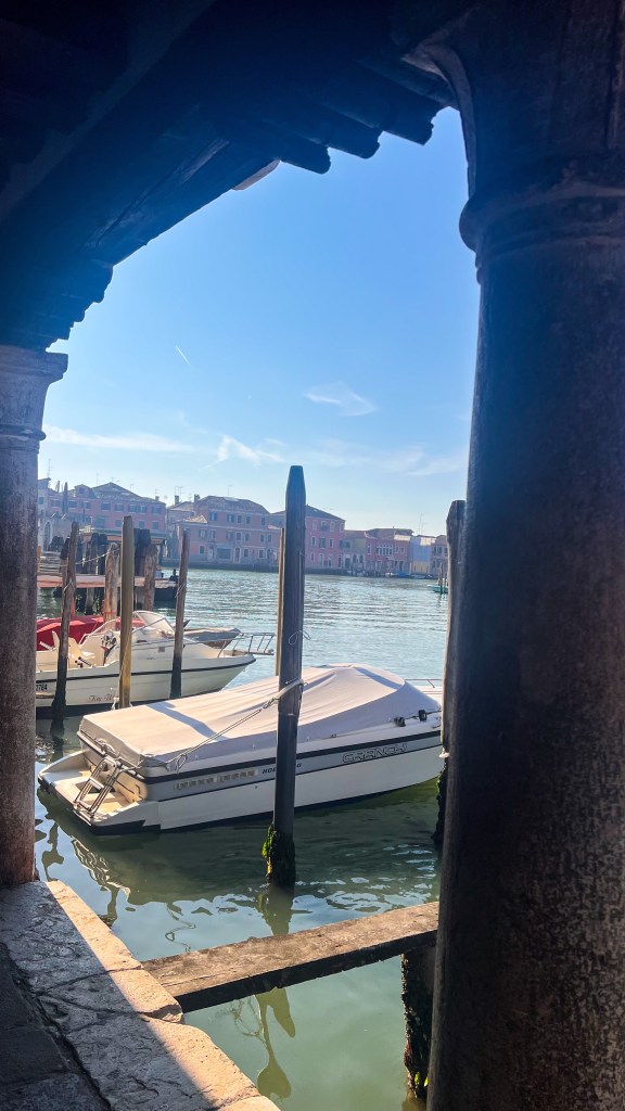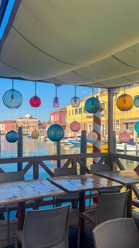 Nous sommes parti de la station Guglie à quelques mètres de notre hébergement direction l’île de Murano environ 15 minutes de trajet. Prêtes à voir les verriers à l’œuvre… sauf qu’on avait pas pris en compte que même le verre prend son dimanche ! Pas de démonstration, mais on a quand même flâné dans une Murano paisible et lumineuse, parfaite pour admirer les vitrines et savourer le calme loin de la foule. Nous y étions assez tôt.