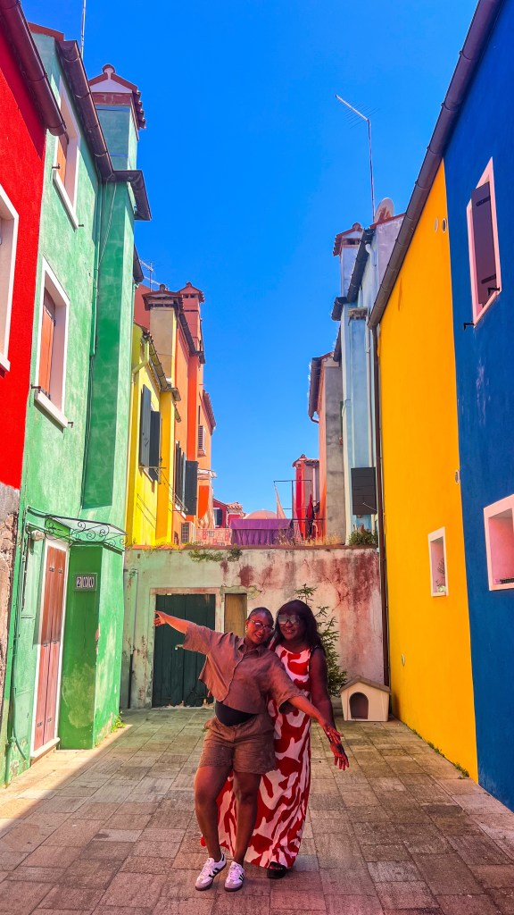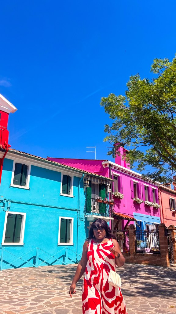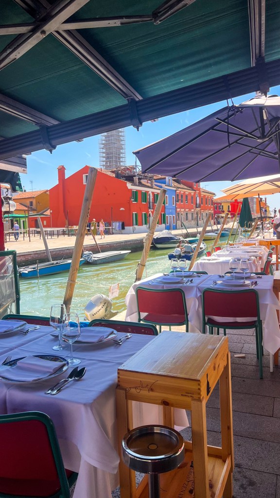 Nous avons ensuite pris la ligne 12 départ de la station Murano Faro (attention il y en a plusieurs) direction Burano. Après une traversée d’environ 35 minutes, nous avons débarqué et pris une pause immédiate dans un café proche de la station de bateau pour un petit déjeuner. Ensuite nous avons flâné dans l’île en y faisant le tour complet. À 10h30, il y a déjà pas mal de monde surtout à l’entrée de l’île ça stagne un peu. L’île est belle et les maisons colorées donnent envie d’explorer. Il y’a beaucoup de restaurants et de boutiques, mais peu de zones d’ombres pour s’abriter.
