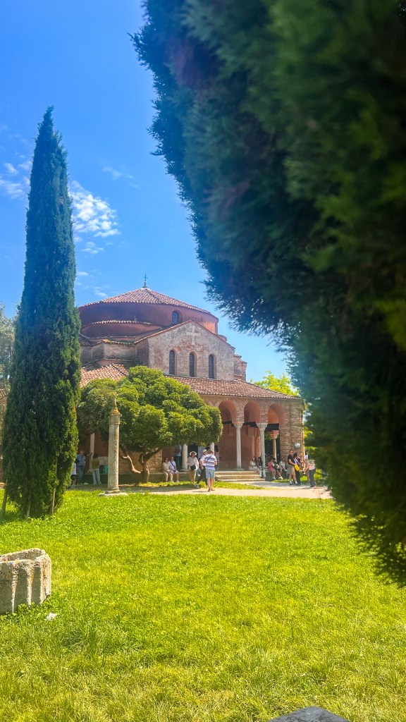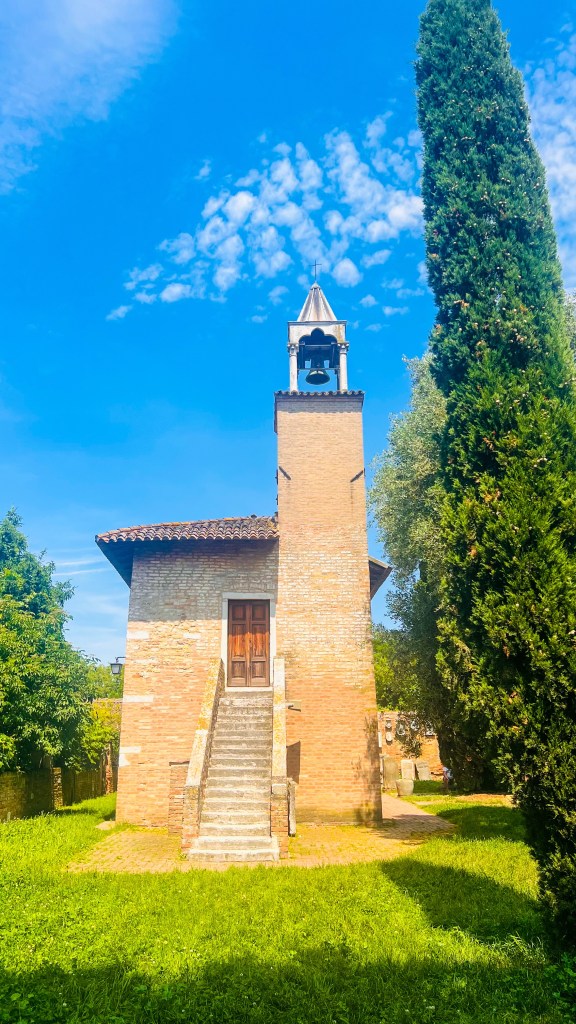 Après Burano, directement Torcello à 5 minutes mais attention je n’ai pas trouvé très clair les indications sur le plan de la ligne 12 on voit les îles se suivrent et les arrêts marqués mais en réalité on parle plutôt d’une ligne 9 (attention aux horaires) qui dessert Torcello. Je vous conseille donc de demander au personnel du bateau. Torcello , on a eu l’impression de remonter le temps : pas un chat, juste des cigales, des vieilles pierres, la basilique et une tranquillité absolue.
