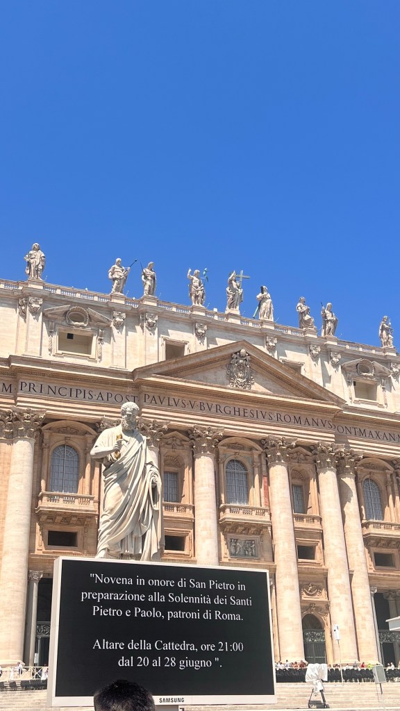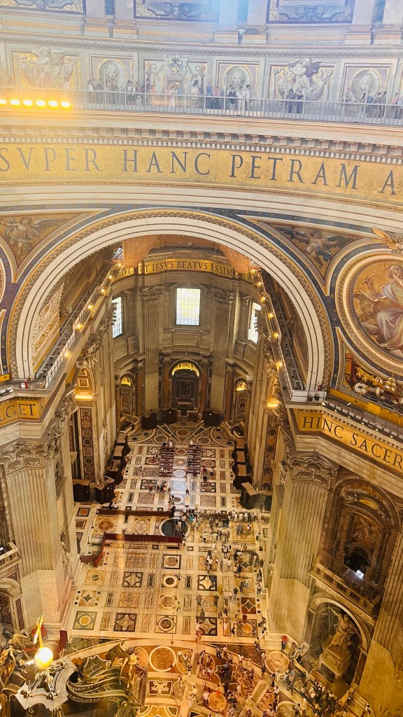 Dès notre entrée dans la basilique, on est saisi par l’échelle monumentale du lieu. Le calme, la lumière, la grandeur… Tout impose le respect. Un office religieux était en cours, ce qui renforçait cette atmosphère presque irréelle. Parmi toutes les œuvres visibles, la Pietà de Michel-Ange a été un vrai moment d’émotion.
