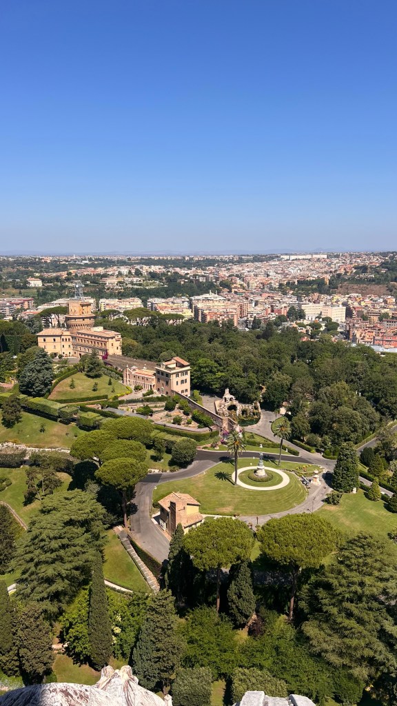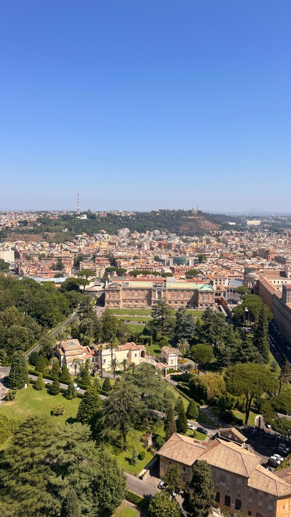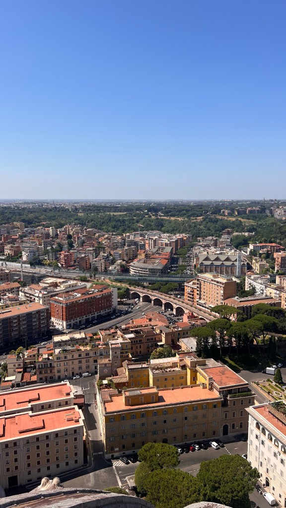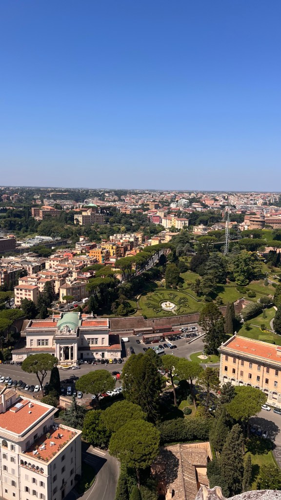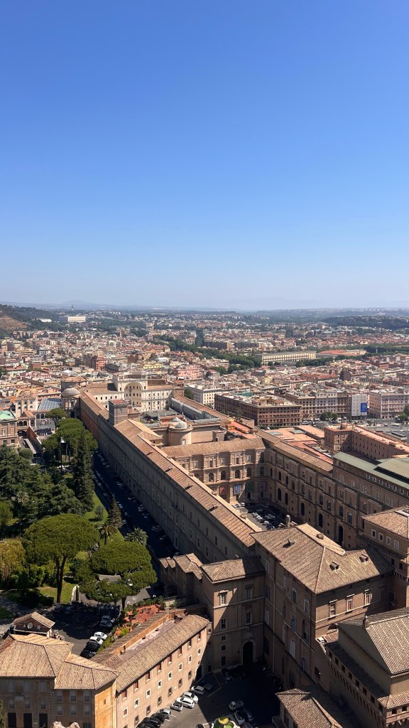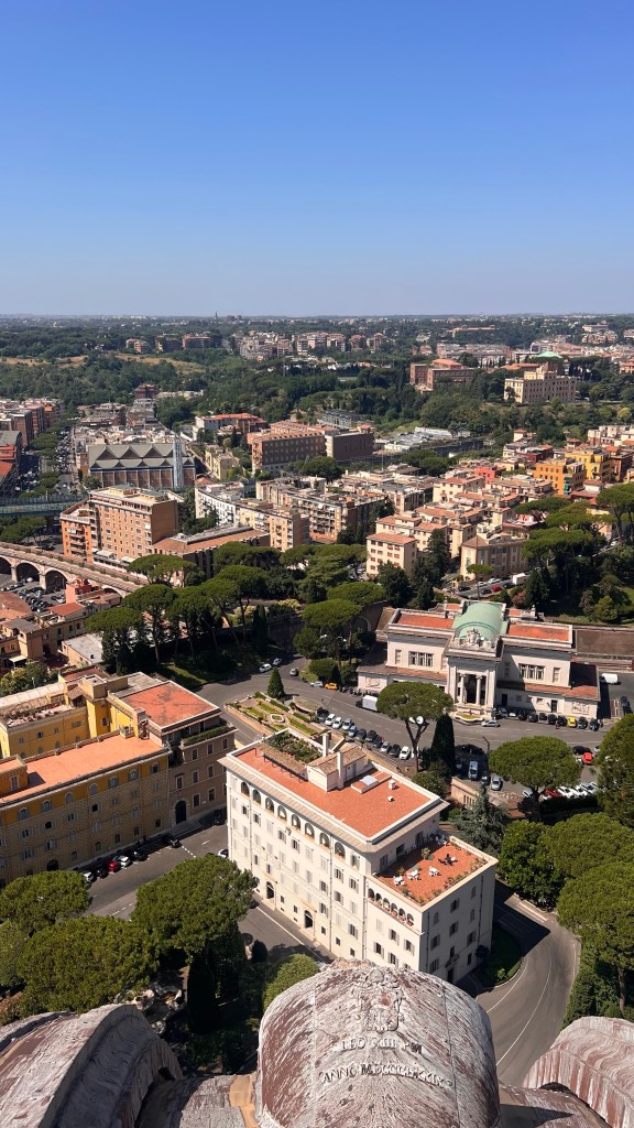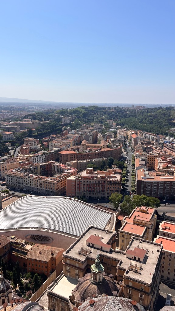 Et puis, là-haut… le choc visuel. Une vue à 360° sur Rome, le Vatican à nos pieds, les toits de la ville qui s’étendent à perte de vue. Ce moment de silence, suspendu au-dessus de la ville, restera longtemps gravé. On se sent petit, mais incroyablement chanceux.