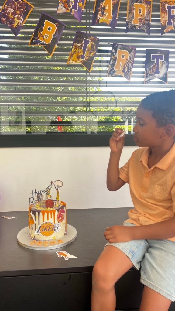Pour l’occasion, c’est lui qui a choisi le thème : le basket. C’est le sport qu’il a envie de commencer à la rentrée. Il en parle déjà avec des étoiles dans les yeux. Alors on a tout calé autour de ça, et il était fier. Fier d’avoir un univers à lui, fier de voir ses goûts respectés, et surtout, fier de grandir.