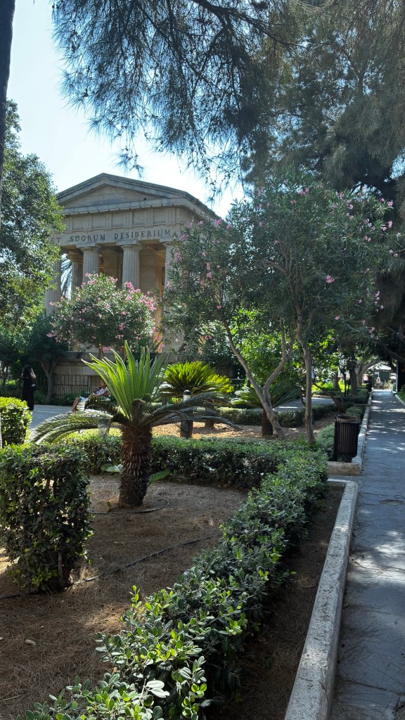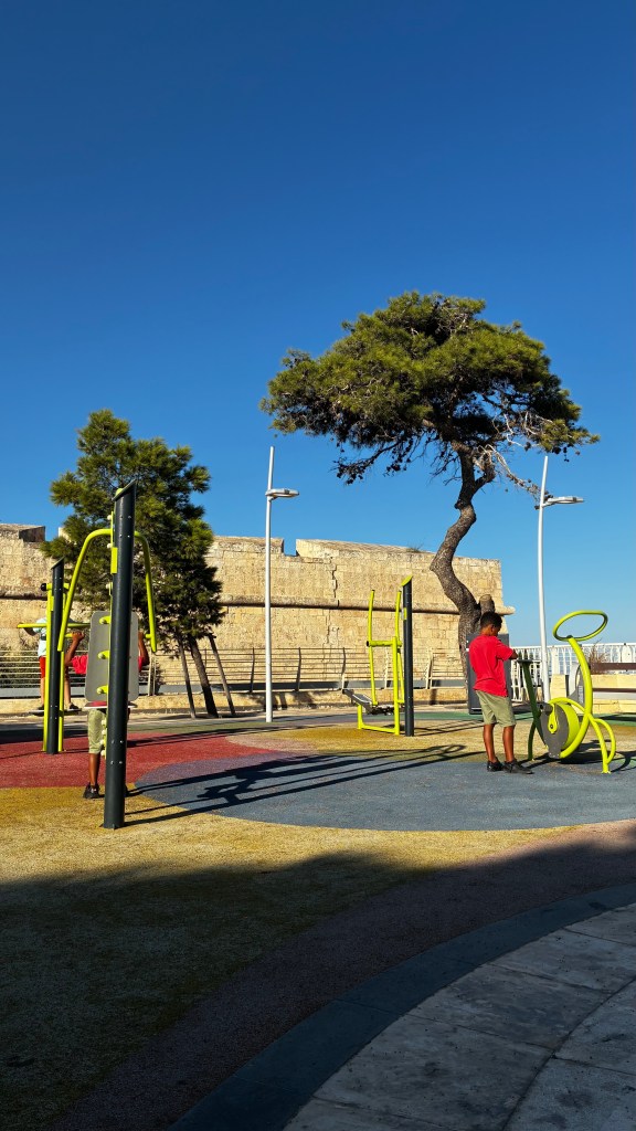 Puis montée vers les Upper Barrakka Gardens : une vue à couper le souffle sur le Grand Harbour et les Trois Cités, un endroit parfait pour faire une pause à l’ombre et prendre des photos. Les enfants ont adoré observer les canons en contrebas et s’imaginer des batailles de pirates. Plus bas, les Lower Barrakka Gardens offrent une ambiance plus calme, avec l’impression d’un jardin secret face à la mer – idéal pour souffler un peu après la marche dans les rues animées.