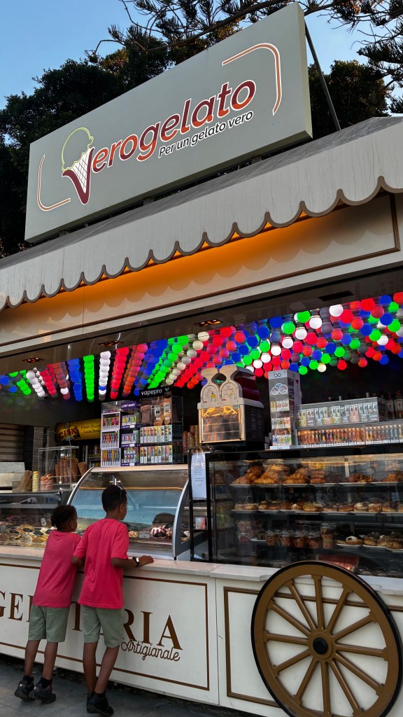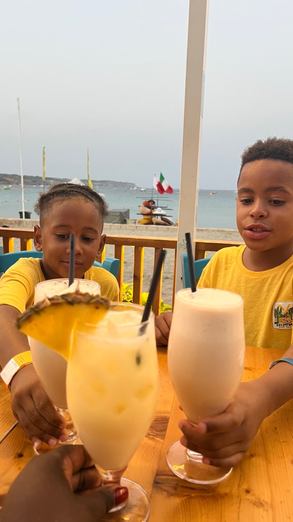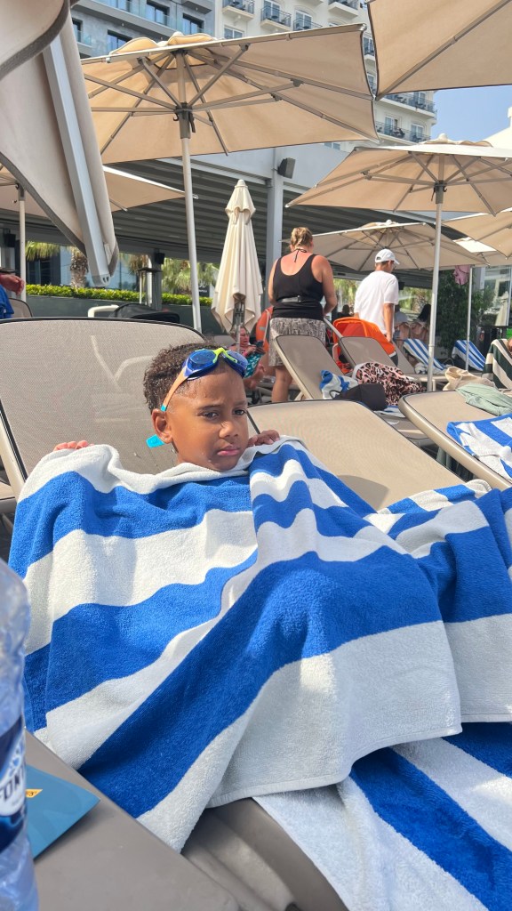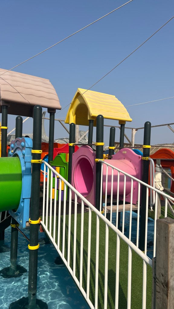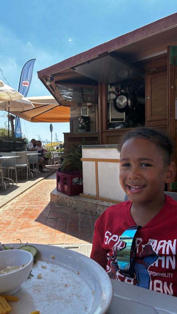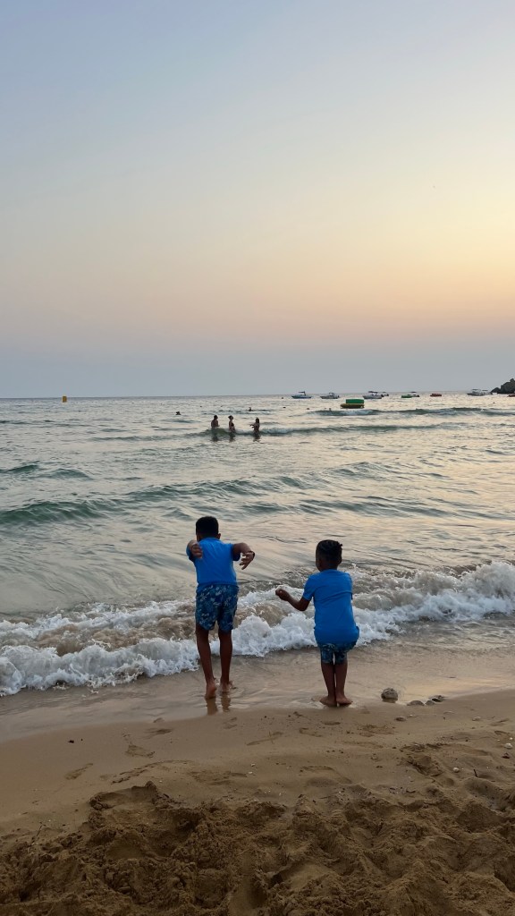 Nous avons terminé la journée par un dîner au restaurant Aqualuna, installé en bord de mer, avec une vue superbe et une atmosphère détendue. Les enfants ont couru un peu sur le front de mer pendant que j’appréciais enfin de m’asseoir face à la mer. Ensuite, nous avons fait le chemin du retour… à pied. Une marche agréable qui nous a permis de découvrir que notre hôtel n’était finalement qu’à deux pas. Un petit plaisir simple, comme souvent en voyage. Puis 30 minutes de piscine pour les enfants avant 21 heures.