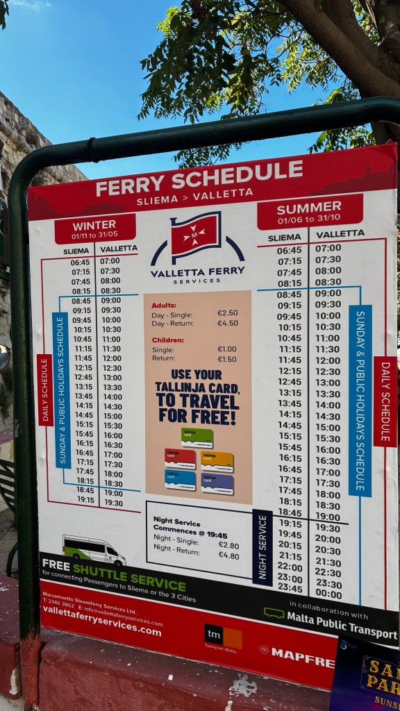 Loger à Il-Gżira est un vrai atout. On est à deux pas de La Valette et de Sliema, tout reste accessible à pied, en bus ou en ferry. Un gain de temps et d’énergie précieux quand on voyage seule avec des enfants. Le ferry La Valette–Sliema est une excellente alternative : rapide, agréable et amusant pour les enfants.