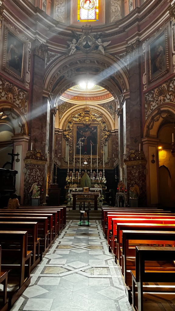 Sur Gozo, nous avons pris le bus 301 pour rejoindre le centre (billet à 2,5€, mais le chauffeur m’a gentiment laissé passer). Ensuite, nous avons fait une pause déjeuner rapide au restaurant Cupcake, car les enfants avaient faim. Nous avons visité la Citadelle, sa cathédrale et le musée associé. Le timing étant serré, nous avons pris un Bolt pour revenir au bateau plus rapidement.