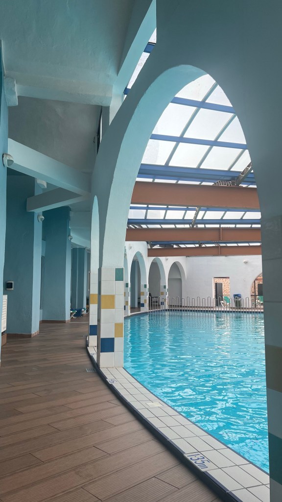 Cette sixième journée a été placée sous le signe de la détente. Nous avons passé la matinée et une bonne partie de l’après-midi chez Aqualuna, un beach club situé juste en face de la mer. Grâce à notre hôtel, nous bénéficions d’un accès illimité : piscine, transats, serviettes… de quoi vraiment en profiter sans se soucier de l’organisation. La piscine est grande, l’ambiance décontractée, et c’était exactement ce qu’il nous fallait pour souffler après plusieurs journées rythmées par les visites. Nous avons même déjeuné sur place, pratique et agréable.