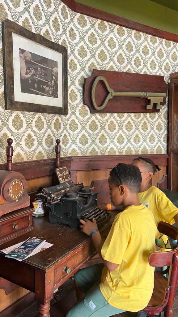 La matinée a commencé tranquillement à l’hôtel : les garçons ont testé toutes les piscines, y compris le jacuzzi, sans rien laisser passer. Ensuite, direction Popeye Village, le décor de cinéma construit en 1980 pour le film Popeye, aujourd’hui transformé en parc familial. Nous avions réservé les billets sur le site officiel (57€, à retirer sur place). Sur place, deux restaurants, une zone aquatique surveillée avec piscines adaptées aux enfants, toboggans et animations continues. Nous avons déjeuné sur place et pris quelques boissons (environ 45€). Nous y sommes restés jusqu’en fin d’après-midi, même si 2 à 3 heures suffisent pour découvrir l’essentiel : avec les enfants, le temps s’étire vite car ils veulent tout tester.