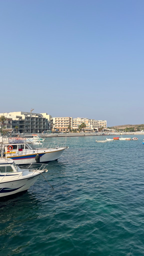 La journée s’est terminée sur Għadira Bay (Mellieħa Bay), avant de rentrer dîner à l’hôtel. Clairement, c’est peut-être la plus belle journée de notre séjour : paysages à couper le souffle, baignades mémorables, arrêts culturels et photos depuis le bateau, le tout en une seule journée bien remplie.