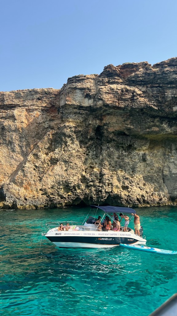 Nous avons embarqué pour une journée croisière au départ de Mellieħa Bay, organisée par Oh Yeah Malta Cruises and Water Sports. Le rendez-vous était à 9h00 sur le front de mer pour l’embarquement (début de l’activité à 9h30). Nous avons réservé l’excursion via GetYourGuide, et les billets électroniques étaient disponibles directement sur l’application. L’excursion dure environ 6h30 et à coûté 55 € pour 3. La croisière comprend plusieurs arrêts photo et visites des caves le long du trajet, offrant de magnifiques points de vue sur les falaises et les criques de Malte et Gozo. Ces pauses permettent de prendre des photos spectaculaires et d’admirer le paysage depuis le bateau, sans se presser, un arrêt de 3h sur Gozo et un arrêt baignade sur Blue Lagon.