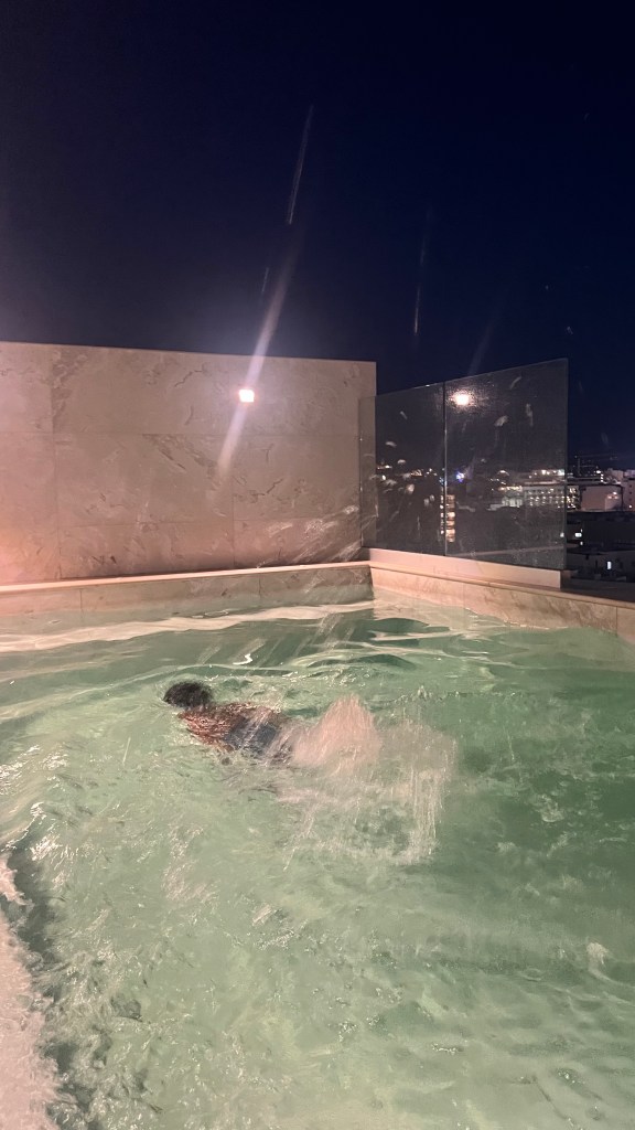 De retour à l’hôtel, on a profité une dernière fois de la piscine juste avant la fermeture. Et là, cerise sur le gâteau : nous étions seuls, comme si la piscine nous appartenait. Un vrai luxe en plein été. La soirée s’est terminée simplement avec un Ubereats, histoire de garder le rythme tranquille de la journée.