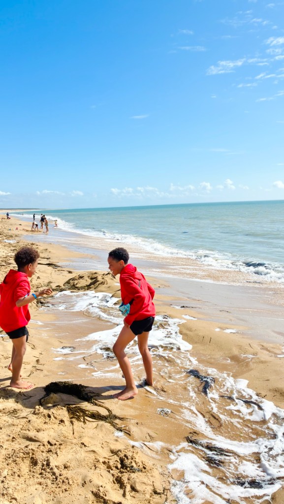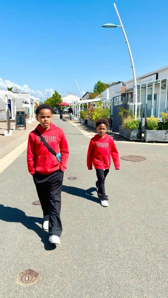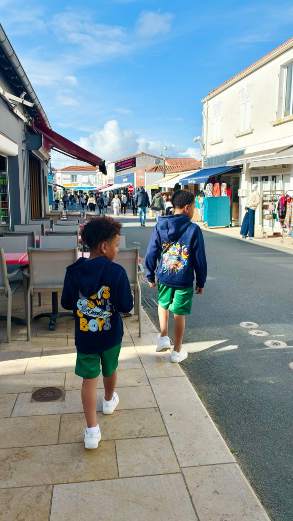 Très vite, les journées ont pris un rythme assez simple. Les enfants passaient beaucoup de temps entre la piscine, le kids-club et surtout le City stade où ils se sont fait des copains presque immédiatement. De mon côté, j’avais prévu de maintenir quelques visites dans la semaine, mais le camping a vite repris le dessus. Nous avons quand même fait quelques sorties autour du camping. Une balade à La Tranche-sur-Mer avec promenade dans la rue commerçante, glace et passage sur la plage. Un déjeuner à La Faute-sur-Mer suivi d’un long moment sur la plage avant de terminer la journée par une promenade au port de L’Aiguillon. Un autre soir, nous avons pris la route vers Jard-sur-Mer pour profiter du coucher de soleil à la plage de Boisvinet avant d’aller dîner au port. Des sorties simples mais qui s’intégraient parfaitement dans le rythme des vacances. Pour résumer :